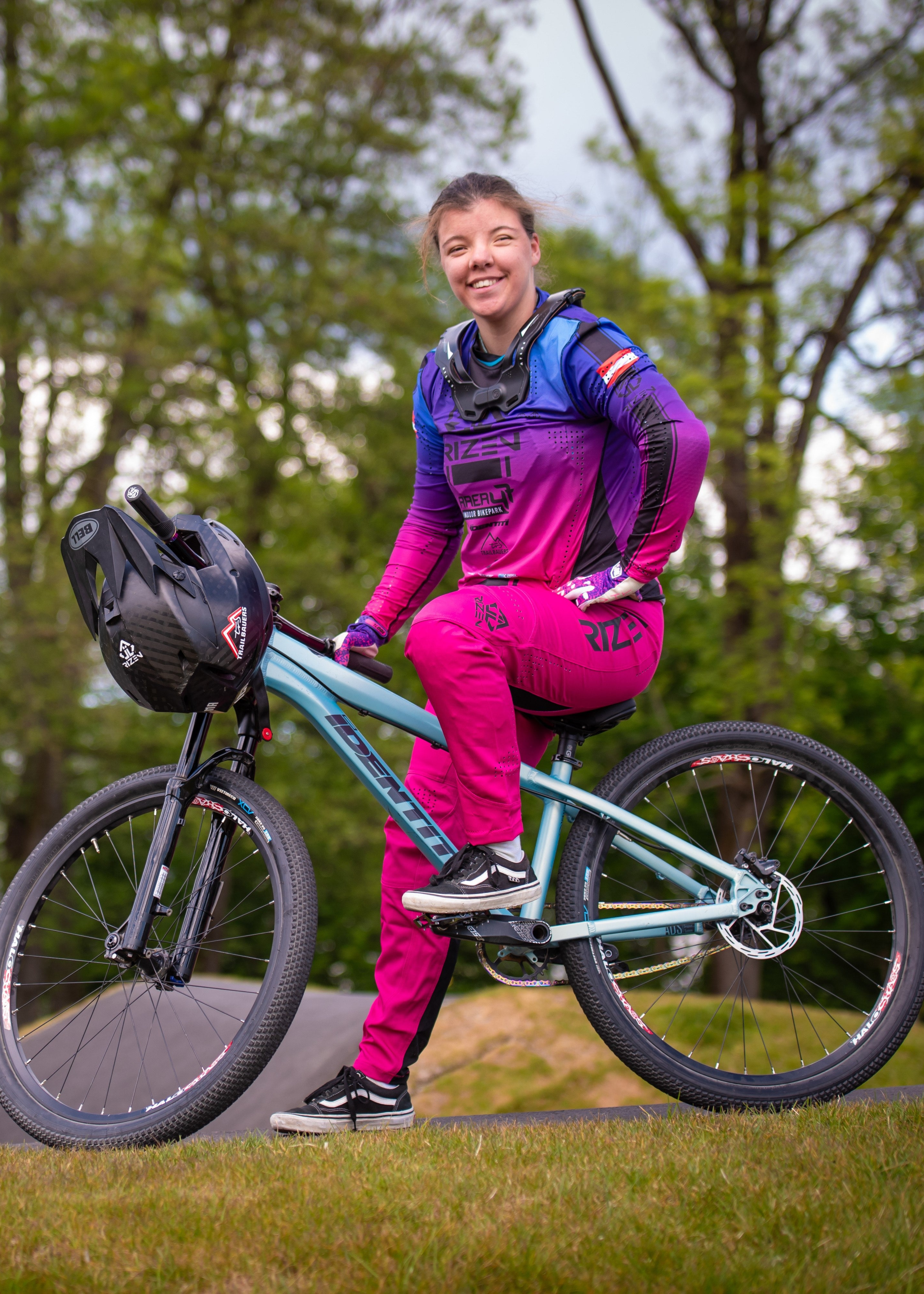 Lena Bauer, geb. 13.Mai 2004, fährt hauptsächlich Pumptrack und Race BMX, ist aber auch auf dem MTB und dem Dirtjump Bike zu finden.